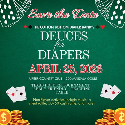 Save the date for our 4th Deuces for Diapers Texas Hold'Em Poker Tournament!